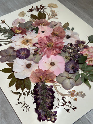 I'm a floral preservation artist and lead designer at Vancuterie. My pressed floral creations are inspired by 25 years of pressing, arranging, growing, and photographing flowers. My practice has been enhanced through in-class training, workshops, internships, hands-on training, and an ongoing curiosity to perfect my craft. I am deeply inspired by flowers, in varying mediums.